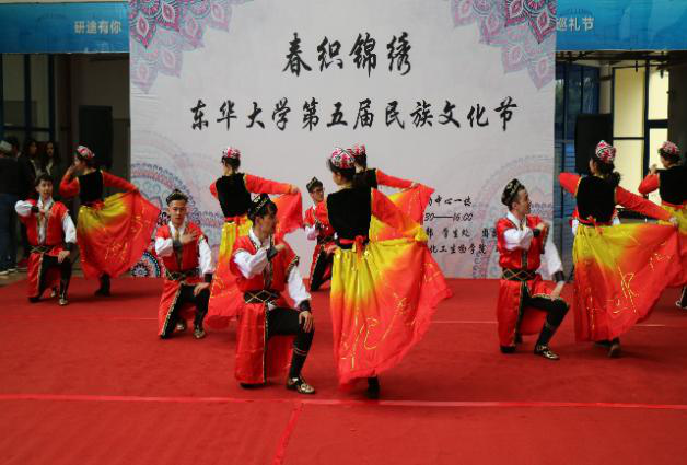 4月2日,为纪念建国70周年和五四运动胜利100周年,进一步宣传和贯彻习近平新时代中国特色社会主义思想和党的十九大精神,增进民族文化交流,丰富英国365集团官网校园文化生活,英国365集团官网第五届民族文化节在松江校区大学生活动中心如期举行。本次民族文化节活动由校党委统战部、学生处、团委、民族联联合主办,英国365集团官网、化工生物学院、环境学院共同承办。活动吸引了大批师生的积极响应,松江区民族联和广富林街道的领导与嘉宾应邀共同参加了本次民族文化节活动。