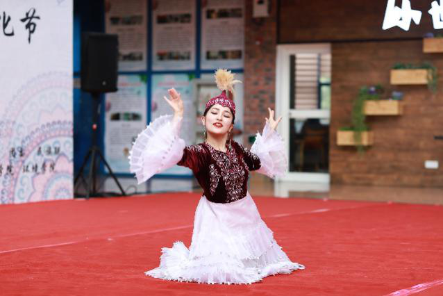 来自藏族、维吾尔族、哈萨克族、彝族等多民族的同学和少数民族教师代表倾力合作,倾情奉献,通过民族歌舞表演、民俗特色展示、文化互动体验等多种形式,向全校师生们展示了民族文化的魅力。粗旷豪放的藏族舞蹈,每一个鼓点都应和着民族特有的艺术色彩,闻歌而舞,舞中有歌;热情洋溢的维吾尔族歌舞则像是来自西域的精灵,每一个悦动都带着葡萄美酒的清甜芬芳;悠扬婉转的冬不拉带着哈萨克民族的传说赢得了所有听众的耳朵;彝族的歌曲也有着别样的豪迈,仿佛策马而来的英雄从山间纵身而下;蒙古族教师的舞蹈《美丽的草原我的家》为大家展现了广阔的草原美景。与此同时,汉族、土家族、朝鲜族、回族、蒙古族、满族、壮族等各民族的同学们都为大家带来了别具一格的民族特色表演。表演中,当《我和我的祖国》的旋律在人群中响起,一股由内而外的民族自豪感,实现中华民族伟大复兴的历史责任感激荡在大家胸怀。