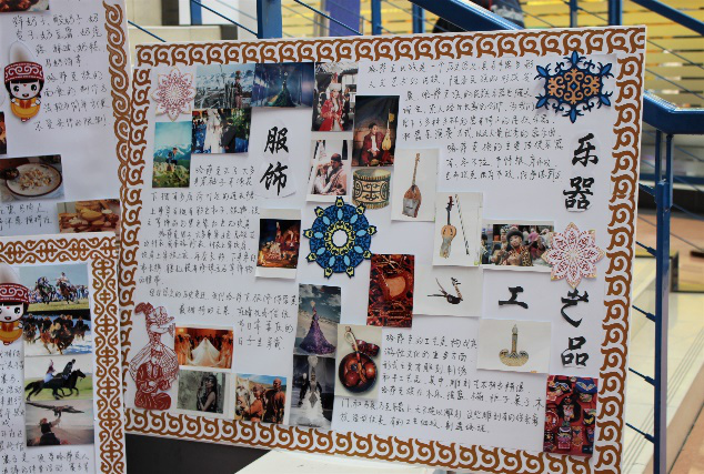 除了精彩纷呈的歌舞表演,各民族同学亲手绘制的展板和民族特色展区,将本民族文化中的民风、民俗以一种趣味性强、互动性高的方式和全体师生共同分享。展区从衣食住行多方面切入,以极具生活气息的淳朴角度和众人分享地域气候、文化传统所催生的多元民族风情,展现不同民族对于美好生活的共同追寻。