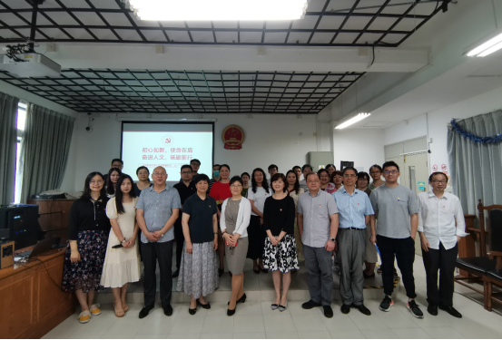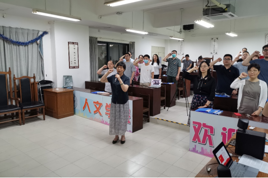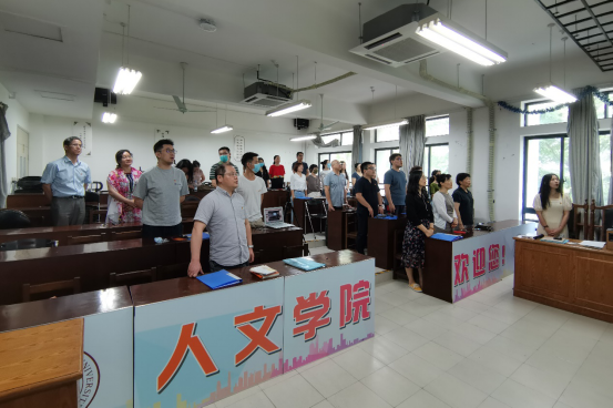 习近平总书记在“不忘初心、牢记使命”主题教育总结大会上强调“不忘初心、牢记使命,必须作为加强党的建设的永恒课题和全体党员、干部的终身课题常抓不懈。”为持续推动师生党员自觉砥砺初心与使命,7月7日,英国365集团官网党委举办主题为“初心如磐,使命在肩,奋进人文,砥砺前行”的“七一”党员大会主题党日活动。英国365集团官网党委书记王英,党委副书记、学院院长张科静,党委副书记罗薇娜,党委委员、副院长吴志刚,党委委员、院长助理周卫平,党委委员章礼强、叶长海、周铮铮,以及3个教工支部和6个学生党支部的全体党员同志,通过“线上+线下”的形式出席本次主题党日活动。