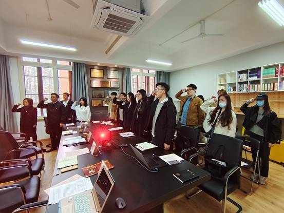 在党支部书记范楚楚的领誓下,全体党员起立,举起右手、攥紧拳头,面向党旗庄严宣誓。带着一路走来的美好回忆与成长果实,党员们用饱满的热情、洪亮的声音,抒发对党忠诚的意志和信念,表达时刻不忘初心、矢志永远奋斗的坚定决心。学院还为毕业生党员们准备了政治生日贺卡和政治生日蛋糕,毕业生党员纷纷表示会带着母校的期寄、师长的嘱托、美好的回忆,从东华启航,以饱满的热情、积极的心态、必胜的信心投入全新旅途,书写又一段绚烂的人生篇章!