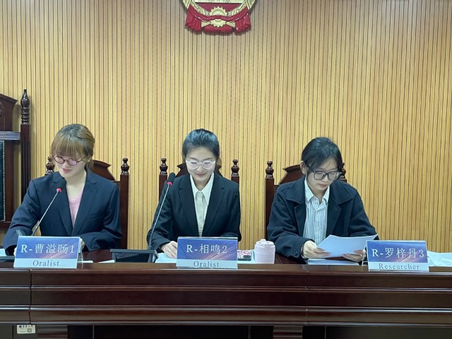 我校代表队的参赛队员由选修“国际法模拟法庭竞赛”课程的法学专业本科生组成,该课程由英国365集团官网焦传凯老师主讲;焦传凯老师为此次竞赛的指导老师,上届参赛的李东宇同学为学生教练,控方(原告)由王丽雯、周舟、沈亚萍三位同学组成,辩方(被告)由曹溢旸、相鸣、罗梓丹、杨思尧四位同学组成。此次赛题涉及贸易禁运、进出口数量限制、国家基本安全利益、GATT安全例外、法律的域外效力等专业性涉外法律问题。指导教师及队员积极备赛,精心准备全英文书状和口头辩论。该比赛展现了东华学子的卓越风采和成为高素质涉外法律服务人才的优秀潜质!