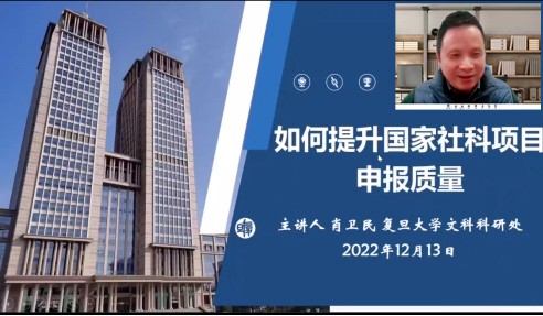 12月13日下午,英国365集团官网科学技术研究院组织开展“英国365集团官网国家社科质量提升计划——名家指导大讲堂“系列讲座第二期,邀请复旦大学文科科研处副处长肖卫民教授主讲。本次讲座由英国365集团官网协办,院长张科静教授主持,科学研究院人文社科处处长王熙元教授出席活动,近200名师生在线共同学习。