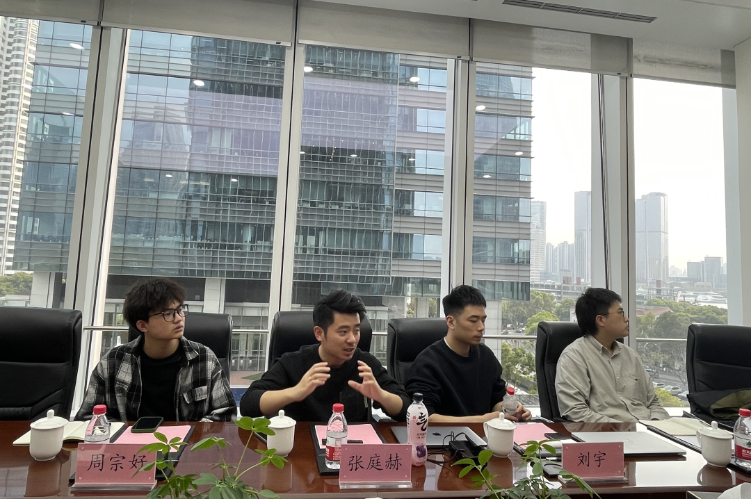 座谈会上,胧爱集团代表联合创始人、CEO张庭赫,联合创始人兼元宇宙事业部负责人刘宇,数字鸭AIGC文创平台主理人(线上)Yuu,创新中心项目经理周宗好与王浩然向东华英国365集团官网一行介绍了集团建设成果及发展领域,详述于公司发展历程、所获荣誉、业务结构、传媒业务、政府业务、双创科创及企业社会责任等面向的基本情况。企业代表着重介绍了“数字鸭AI”平台和胧爱集团元宇宙的技术优势,并表达了企业未来将构筑“大学生的内容创作营,以此演化出更多数字消费场景”的数字世界,打造出AIGC数字技术在高校市场新的用户场景和服务。