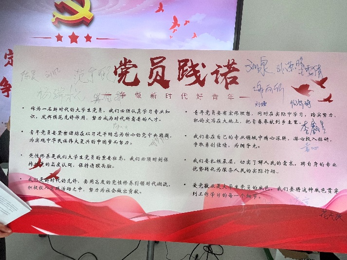 为确保周五论坛活动进一步凝聚全体党员的思想共识并转化为推动实践的强大动力,党支部特别设计了“党员践诺”环节,与会党员结合微党课与讨论研学的心得体会,立足自身的学习工作实际对“强化理想信念、锤炼党性修养,争做新时代合格党员”作出庄严承诺,纷纷表示要把理想信念作为激励自身奋勇向前的力量源泉,始终牢记习近平总书记的嘱托,坚定理想信念,脚踏实地,敢想敢为,为中国特色社会主义事业贡献力量。