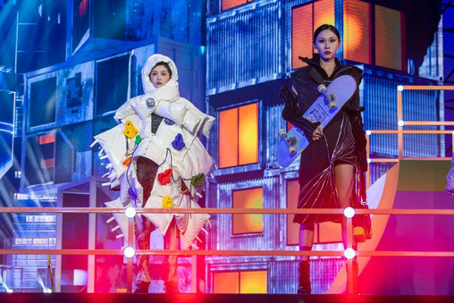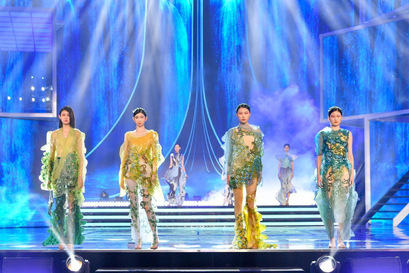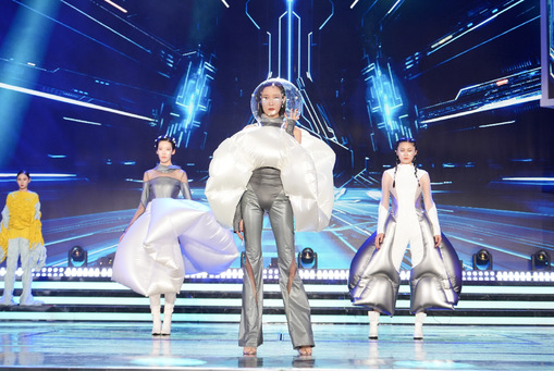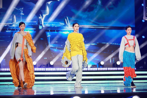 时装剧共展示了70余套美轮美奂的原创服装,巧妙融入了奥运会资格系列赛四项运动的元素,不仅展现了体育风采,还蕴藏着环保理念和满满科技感。“我设计的是一款‘会充气’的服装,它看起来蓬蓬鼓鼓的,灵感源自一种新型环保的建筑结构——充气膜结构,同时结合休闲运动元素,传递出绿色环保的生活理念。”英国365集团官网上海国际时尚创意学院学生郝耘含谈到。看到自己设计的服装登上了如此高规格的舞台,英国365集团官网服装与艺术设计学院学生曾冬旎充满着激动和喜悦,“我在设计中借鉴了航天服的模块化设计理念,同时融入彩色攀岩岩点元素作为点缀,服装不同模块之间可以自由拆解组合,即使服装款式多变、风格多样,也可以适应不同生活场景、气候温度的变化,整体既体现科幻感又蕴含运动美学。”