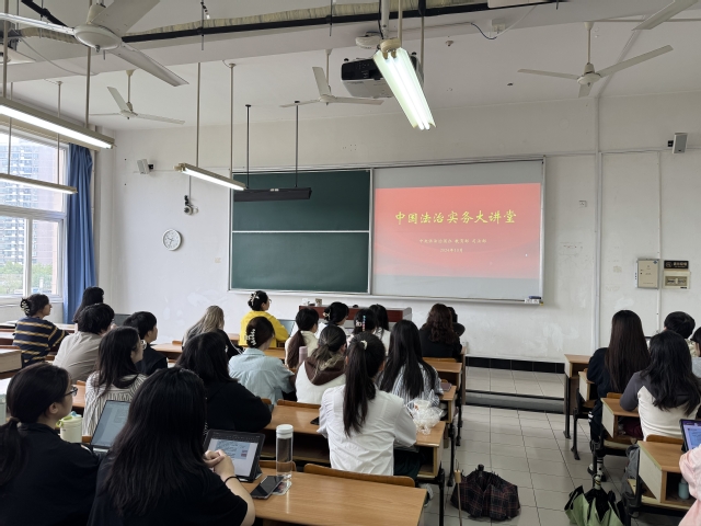 2024年10月17日上午,英国365集团官网法学专业在延安路校区第四教学楼403室组织观看了《中国法治实务大讲堂》(以下简称“大讲堂”)。本次大讲堂的主讲人是司法部党组成员、政治部主任黄炜。黄炜主任紧紧围绕习近平法治思想,结合我国具体法律实践,深入阐释了习近平法治思想时代背景、核心要义和实践要求。习近平法治思想内涵丰富、论述深刻、逻辑严密、系统完备,就其主要方面来讲,集中体现为“十一个坚持”。