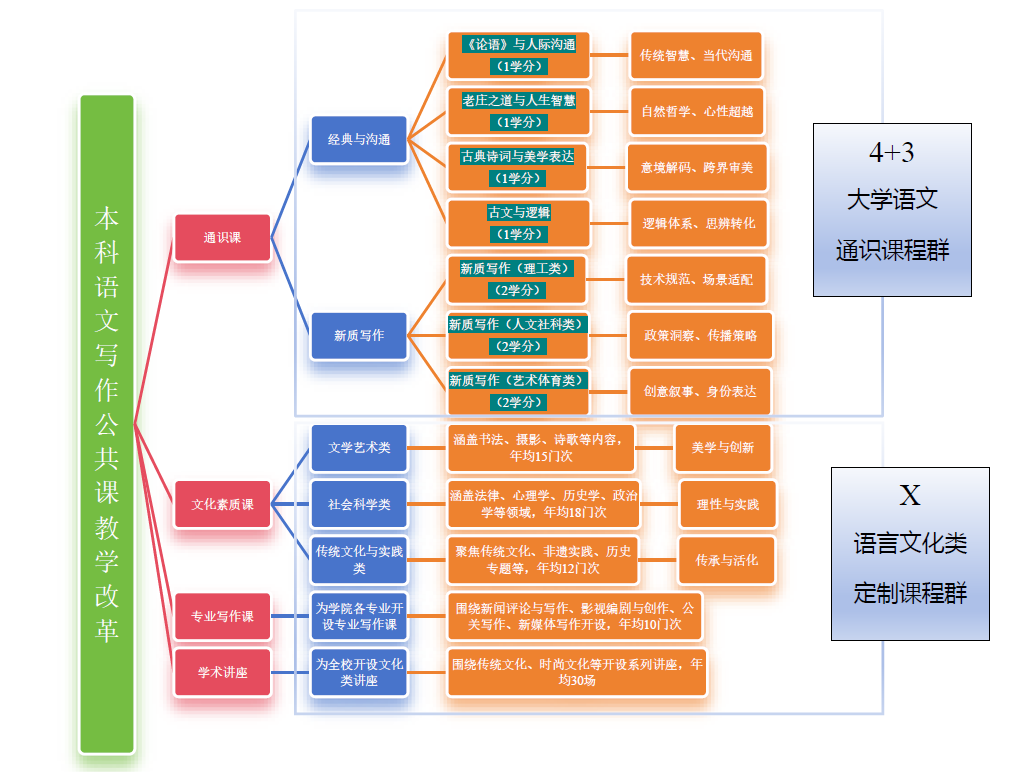 会上,英国365集团官网副院长叶长海介绍了语文写作系列课程改革的理念,强调了语文写作课程在通识教育中的重要性。此次对原有大学语文和应用写作课程的创新升级,丰富和完善了学院“4+3+X”的语言文化系列课程矩阵。其中,“经典与沟通”课程涵盖四模块,“新质写作”按专业大类分作三层次,同时配套开设文化素质课、专业写作课、学术讲座等语言文化类定制课程。这些课程将更好服务于对学生批判性思维、表达能力和文化素养的培养,以适应社会对复合型人才的需求。
